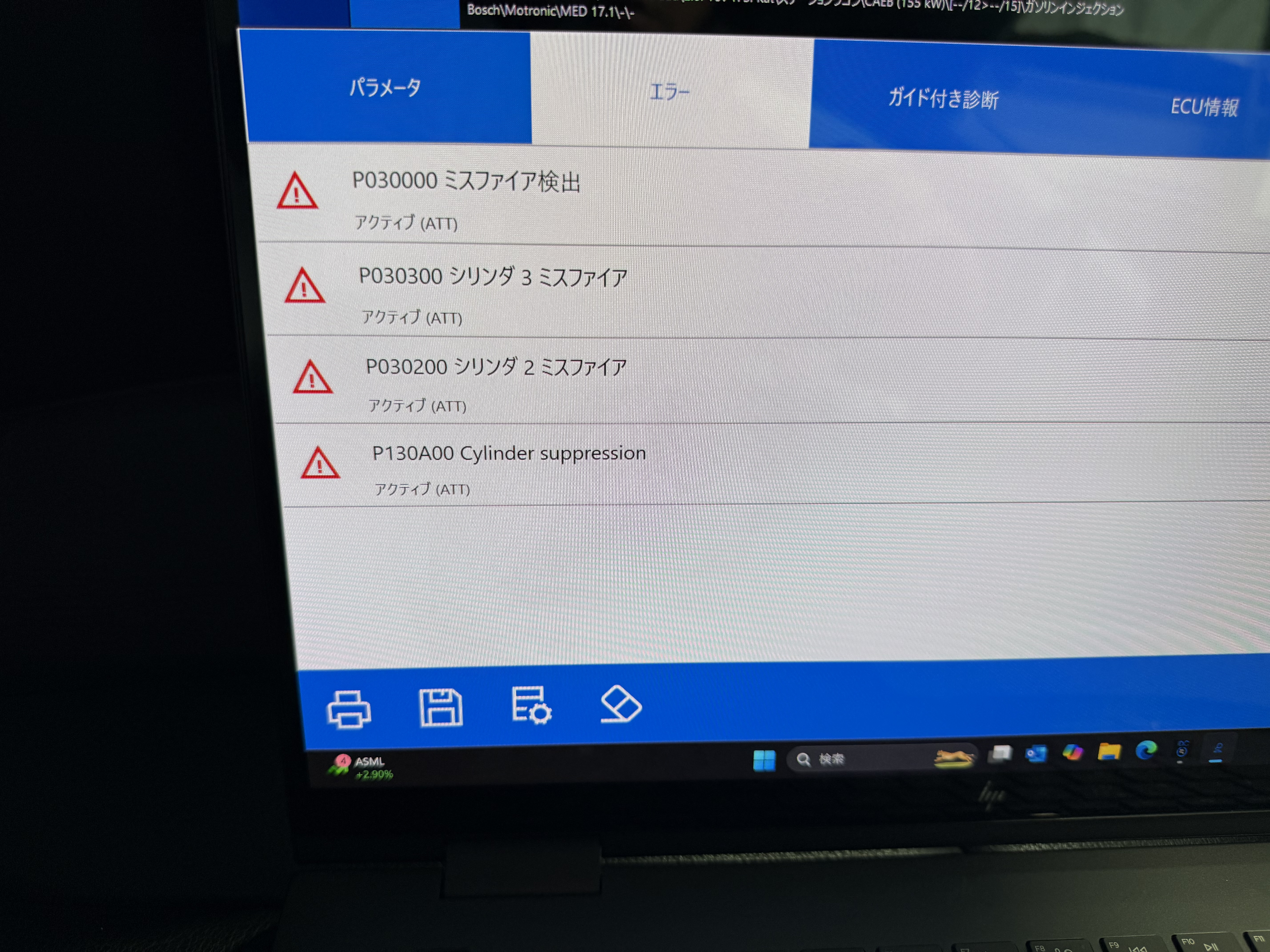 アウディ A4 TFSI エンジン不調 プラグ交換